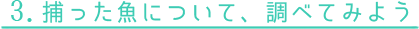捕った魚の名前やどんな環境で生きるのかを調べてみよう。体験が学びになるよ。